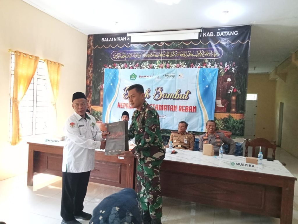BATANG, Senin, 21 Juli 2025 – Komandan Koramil 05/Reban Yang diwakili Serma Koviyanto menghadiri acara lepas sambut Kepala Kantor Urusan Agama (KUA) Kecamatan Reban yang digelar di di Kantor KUA kecamatan Reban