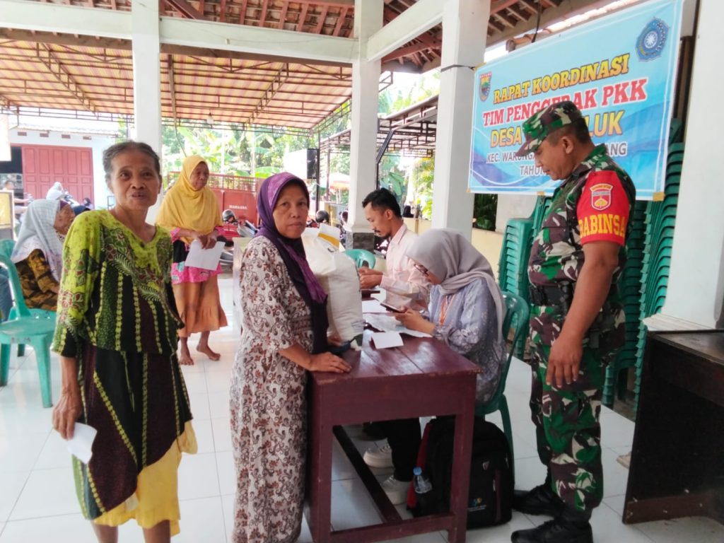 Batang – Babinsa Koramil 11/Warungsem Sertu Warsito, melaksanakan pendampingan kegiatan penyaluran bantuan beras pangan Cadangan Beras Pemerintah (CBP) Tahun 2025. Kegiatan ini berlangsung di Balai Desa Warungasem, Kecamatan Warungasem, Kabupaten Batang, pada Kamis (25/7/2025 ).
