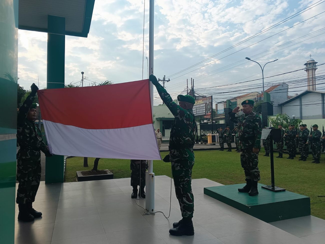 Batang – Kodim 0736/Batang melaksanakan upacara pengibaran bendera merah putih dalam rangka Tujuh Belasan Bulan September 2025 di halaman apel Makodim 0736/Batang, Jalan Jenderal Sudirman No.41, Kelurahan Kasepuhan, Kecamatan Batang, Kabupaten Batang, Rabu (17/9).