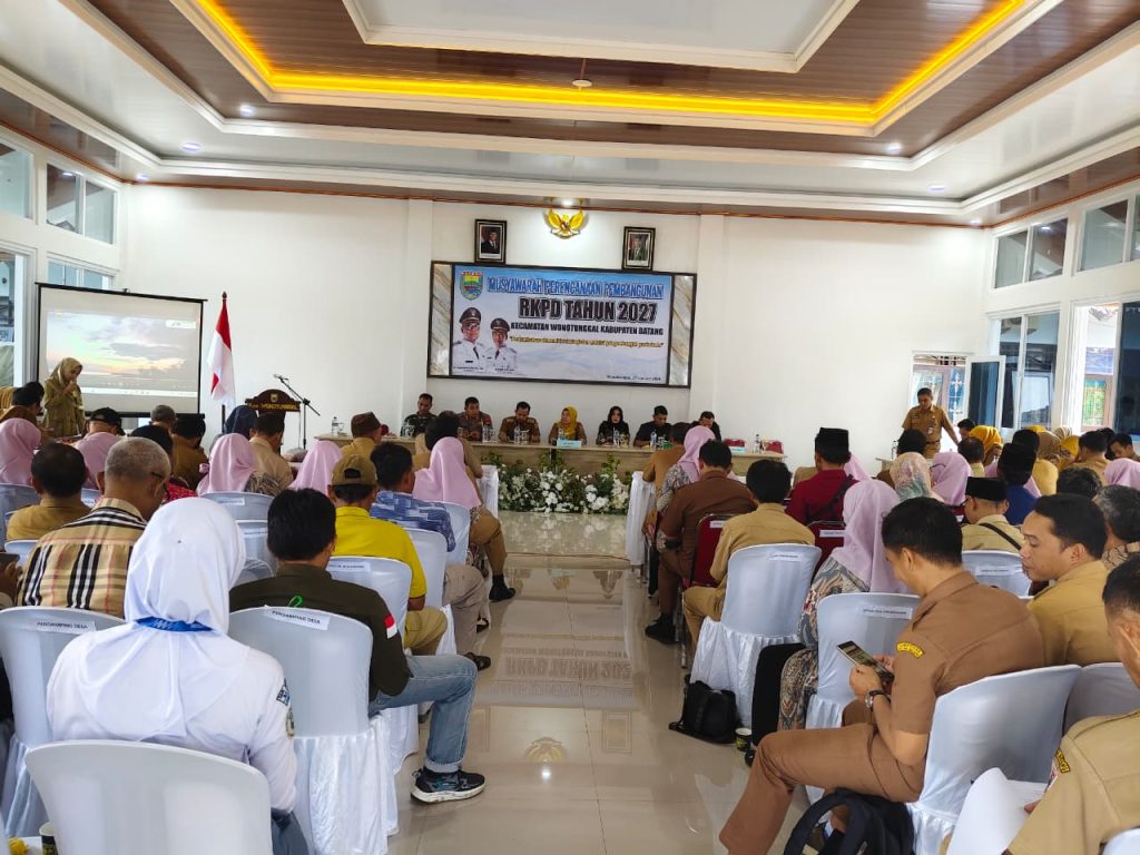 Aula Pendopo Kecamatan Wonotunggal Kab. Batang telah dilaksanakan Musrenbang RKPD TAHUN 2027 wilayah Kecamatan Wonotunggal dengan tema “Pertumbuhan ekonomi berkelanjutan melalui pembangunan pariwisata” yang dihadiri ± 70 orang.
