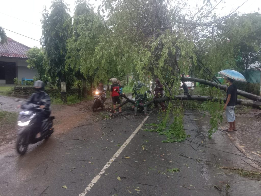 1) Pohon tumbang di DS Brayo menutup akses Jalan Batang – Wonotunggal, DS Wates menutup akses Jalan Warungasem-Wonotunggal.